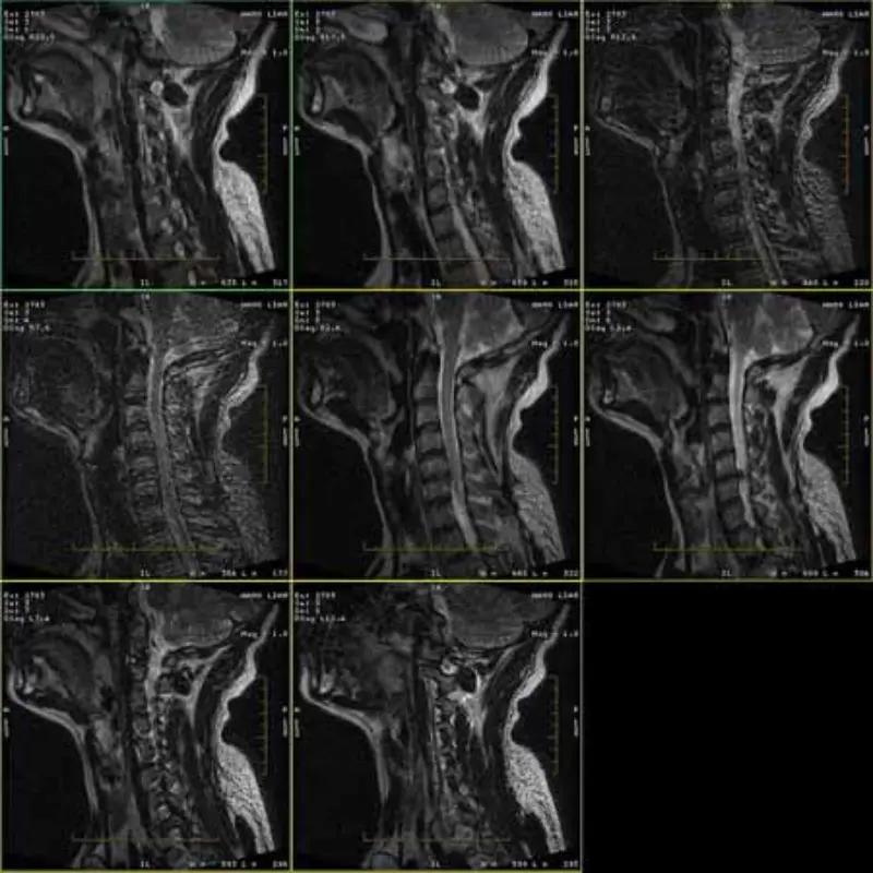 Obrazy protokołów FRFSE i GRE zawierają duchy i czasami obrazy o niskim współczynniku SNR pojawiają się w jednej serii. Ale obrazy protokołu SE są normalne.